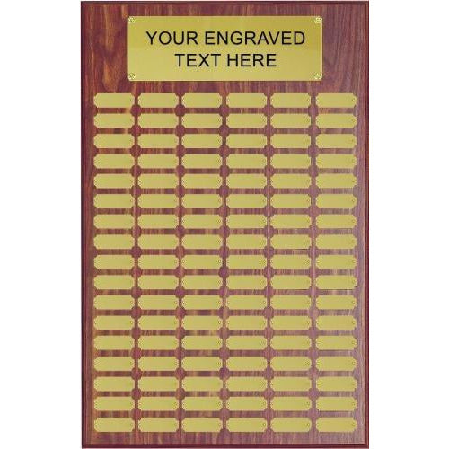 An Elegant 18" x 24" Walnut Finish Perpetual Plaque With Satin Gold Header And 102 Matching Individual Plates. FREE Engraving of all Text Perpetu...