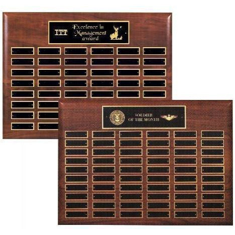 Beautiful Solid American Walnut Perpetual Corporate Plaques with Black Plates engraved in gold lettering. 15"H x 21"W, available with 48 or 60 plat...