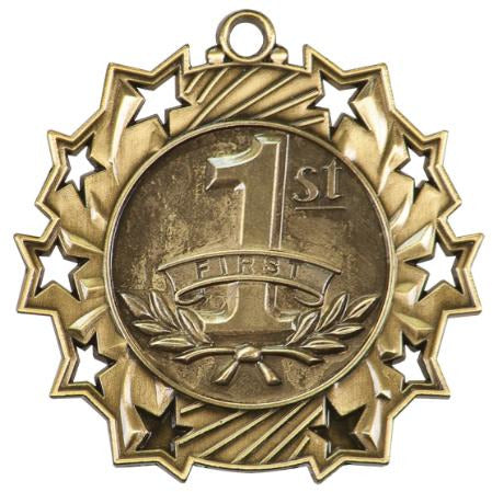 Action's Ten Star Medallions are the perfect award for any event. This unique 2 1/4" medallion is available in a Gold, Silver, or Bronze Finish....