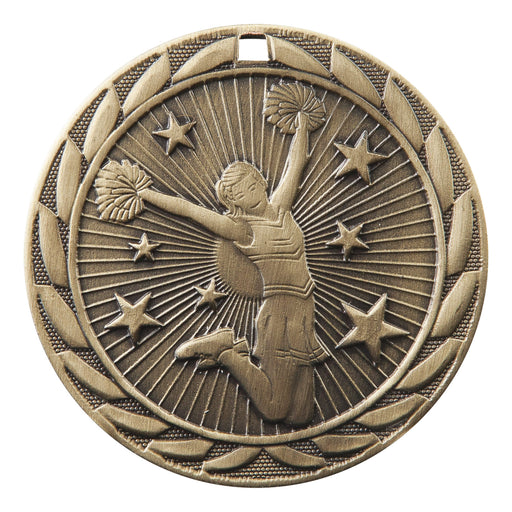 Our cheer wreath medallions is available in Gold, Silver and Bronze finishes with a spectacular sun burst backdrop. 2" in Diameter, this medalli...
