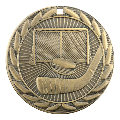 Our hockey wreath medallions is available in Gold, Silver and Bronze finishes with a spectacular sun burst backdrop. 2" in Diameter, this medall...