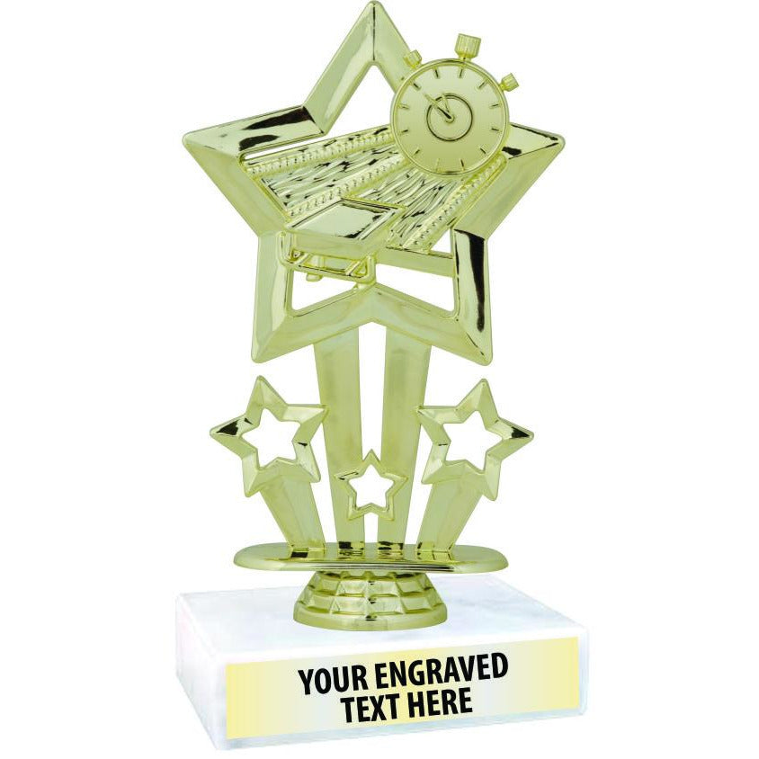 Swim Shooting Star Trophy with amazing detail sitting on top of a White Marble Base. Fast Turnaround!
