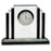 The step design of the clock base is repeated in the alternating clear and black crystal columns on either side of this clear crystal clock. The center rectangle is 1 1/8" thick with a 2-1/2" Roman face clock and plenty of room to personalize. This modern design is an elegant, functional recognition of achievement or personalized gift and is packaged in a velvet lined gift box.
