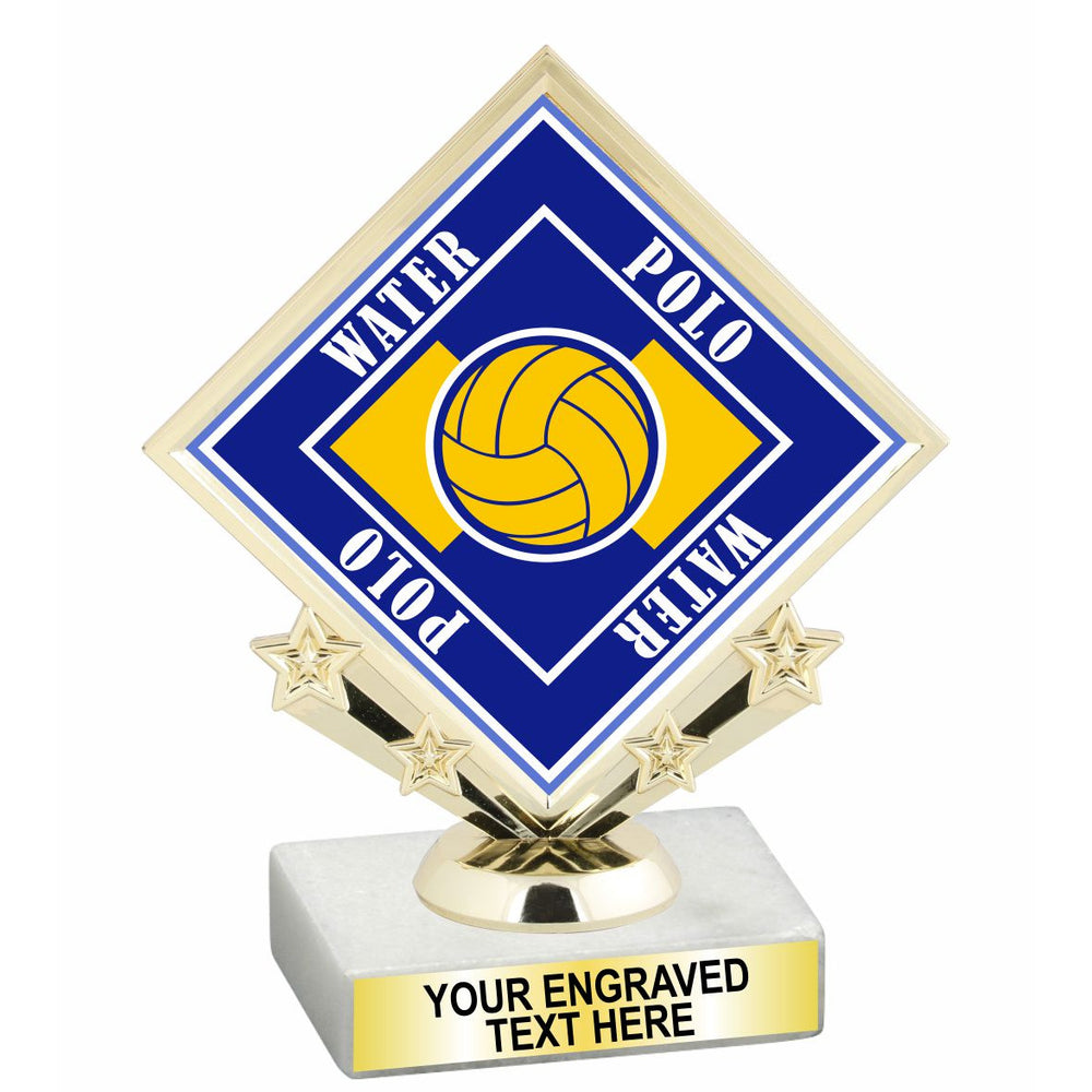 Our new diamond water polo figure with custom graphic displaying stunning detail sitting on top of a White Marble Base.