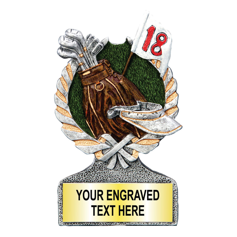 This award features a gold and pewter finish where the gold highlights different elements within the award. A wreath with a bow at the bottom bring the entire award together. Standing 5" tall with plenty of room on the base for your engraving needs is sure to make this award a perfect choice.