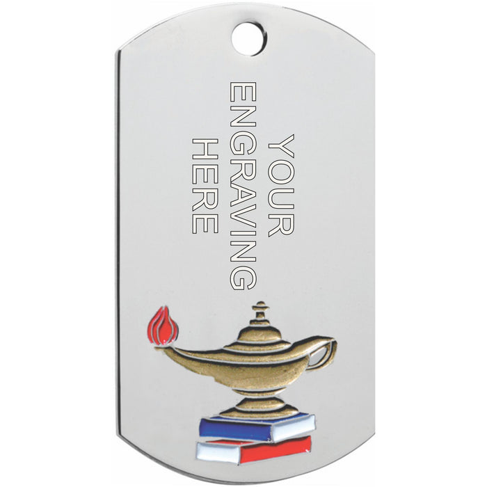 Sporting a very attractive chrome finish is just one of the highlights of this dog tag medal. Layout complete with detailed logo located at the bottom of the dog tag. Measuring 2" X 1" leaves plenty of room to handle any engraving needs. The chrome dog tag can be presented as either a key chain or a neck worn award providing you the ultimate in flexibility.