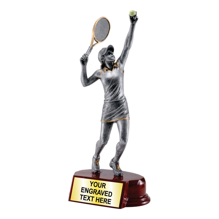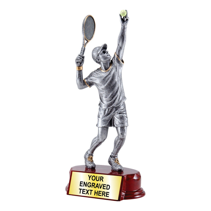 Resin Sculptures are the perfect award for school and sporting events. Featuring a rosewood colored base and antiqued silver sculpture. Tennis Prod...