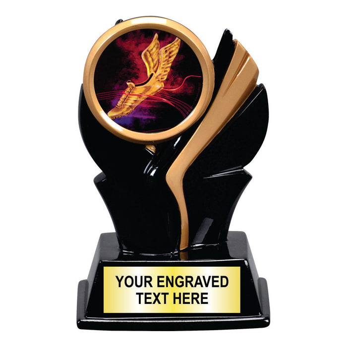 These Valkyrie Awards are a great choice for your next awards celebration. A contemporary design of the classic valkyrie wings done in a gloss black finish with the wings highlighted by gold that holds a sport graphic in the middle of the award to complete the look. These Valkyrie awards are available in your choice of 3 sizes, 6 1/4", 7 1/4" or 8 1/4" tall. The stylized base provides plenty of room for whatever your personalization needs may be. These are sure to put a smile on any recipient.